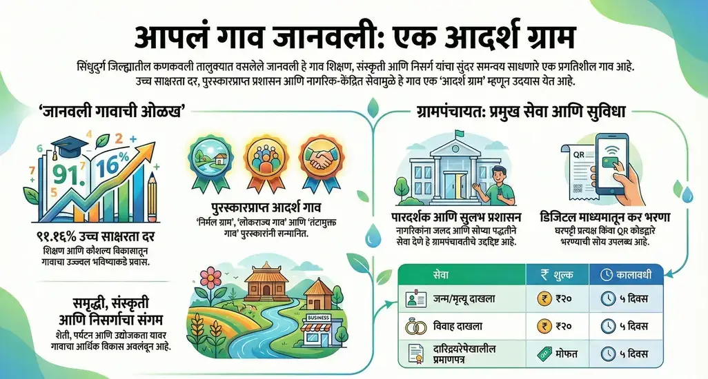 सिंधुदुर्ग जिल्ह्यातील कणकवली तालुक्याच्या रम्य निसर्गामध्ये वसलेले जानवली हे गाव आज ग्रामीण विकासाचे प्रेरणास्थान म्हणून नाव कमावते आहे. एकूण लोकसंख्या सुमारे 2,491 असून पुरुष व महिला संख्येमध्ये संतुलन दिसून येते, यामुळे समाजरचनेत समता व स्थैर्य टिकून आहे. 91.16% चा उच्च साक्षरता दर हे गावातील शैक्षणिक प्रगतीचे मोठे वैशिष्ट्य आहे. शिक्षणात मुलींचा सहभागही स्तुत्य असून पुढच्या पिढीला अधिक सक्षम करण्यासाठी ग्रामपंचायत व शाळा एकत्रितपणे सातत्याने प्रयत्नशील आहेत.