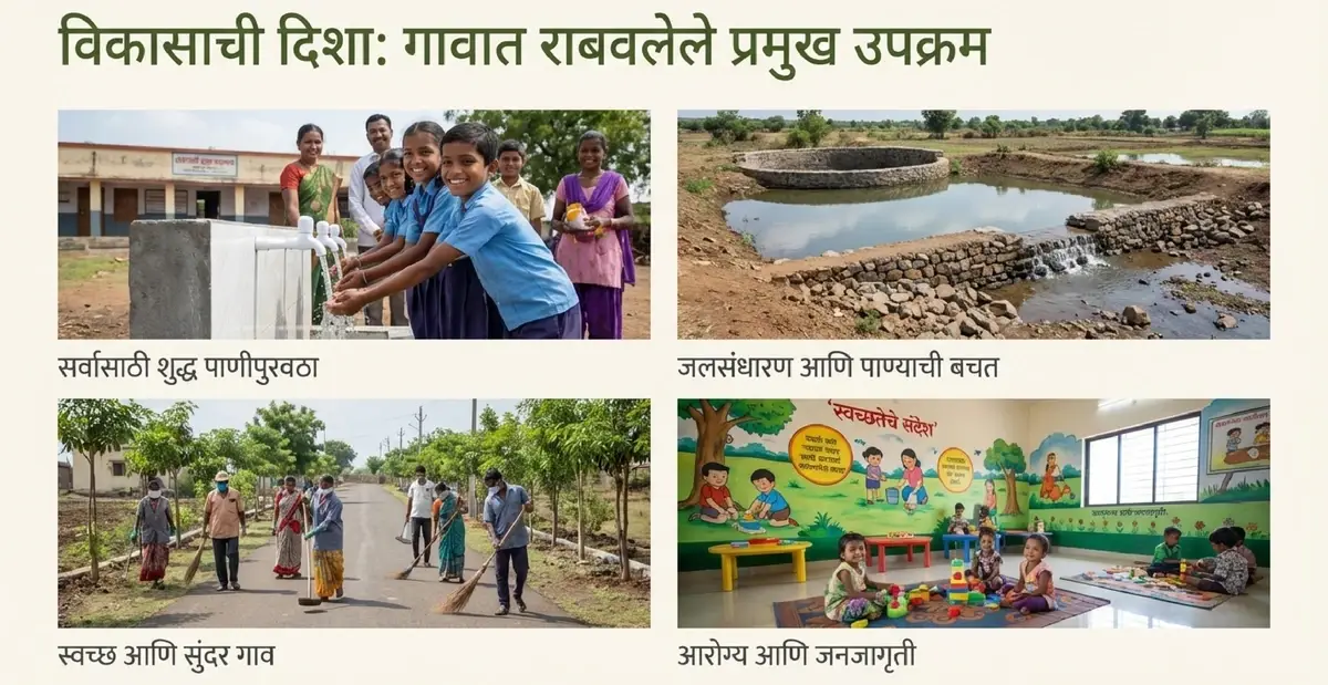 गावाच्या सभोवतालची देवराई व निसर्गसंपदा पर्यावरणपूरक जीवनशैली सांभाळण्यास मदत करते. सांस्कृतिक परंपरा, गावातील मंदिरं व सण-उत्सव हे गावाला एकात्मतेचा बंध देतात आणि “एक गाव — एक कुटुंब” या भावनेतून विकास साधला जात आहे.